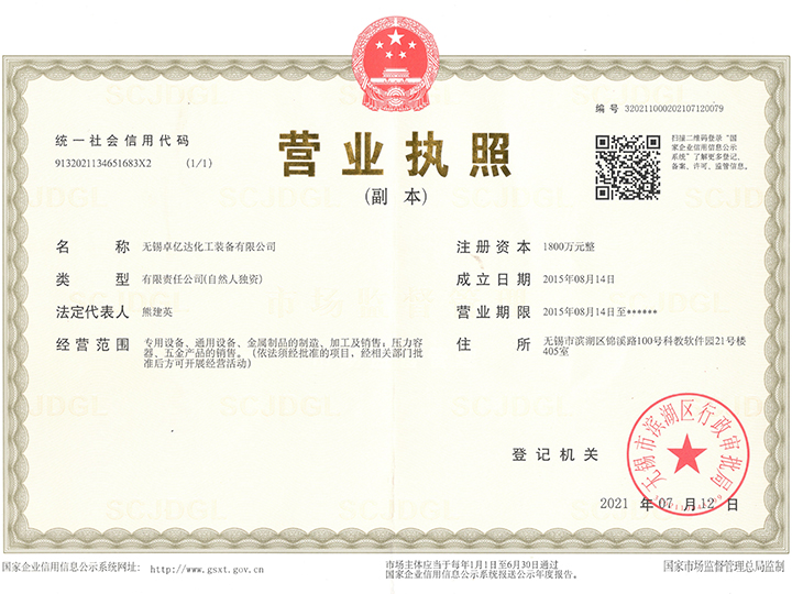 無錫卓億達化工裝備有限公司 質(zhì)量合格、誠信經(jīng)營、互惠互利、真誠相待